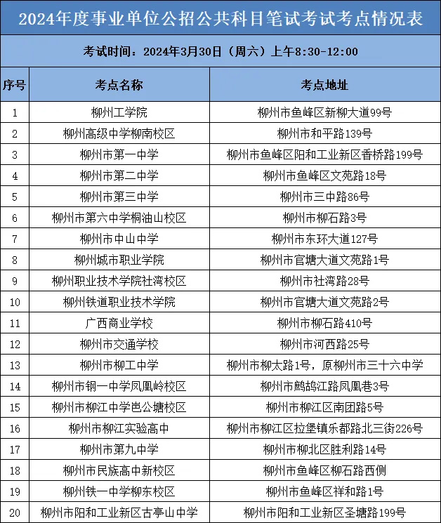 2024年度柳州市事業(yè)單位公開考試招聘筆試考前考點(diǎn)分布