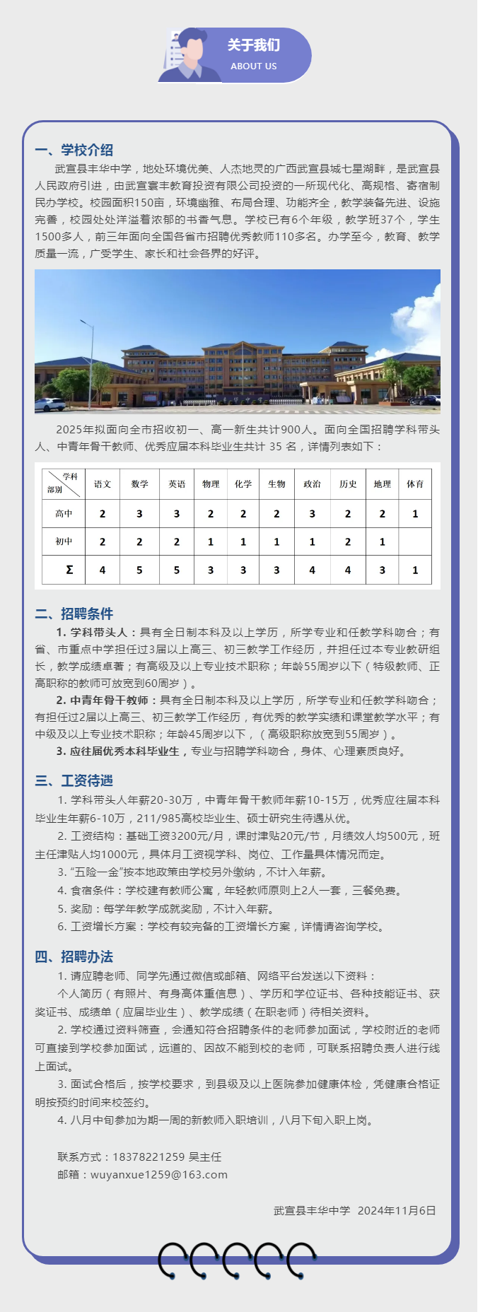原文標(biāo)題:廣西來賓市武宣縣豐華中學(xué)2025年教師招聘簡(jiǎn)章