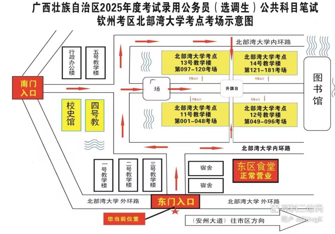 欽州考區(qū)共設(shè)兩個(gè)考點(diǎn),分別為北部灣大學(xué)考點(diǎn)、北部灣職業(yè)技術(shù)學(xué)??键c(diǎn)。(考點(diǎn)地址和具體考場安排請掃附后的二維碼查看)