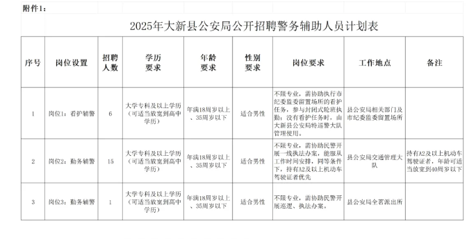 原文標(biāo)題:大新縣公安局公開(kāi)招聘警務(wù)輔助人員公告