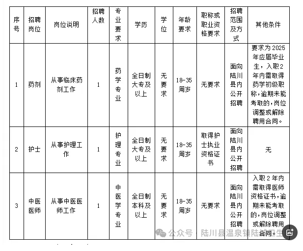 原文標(biāo)題:陸川縣溫泉鎮(zhèn)陸城衛(wèi)生院公開(kāi)招聘編外醫(yī)務(wù)人員公告