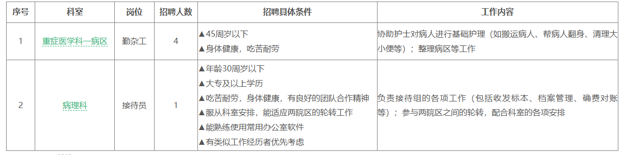 因醫(yī)院工作需要,現(xiàn)面向社會公開招聘5名普通合同工?,F(xiàn)就有關(guān)事項公告如下: