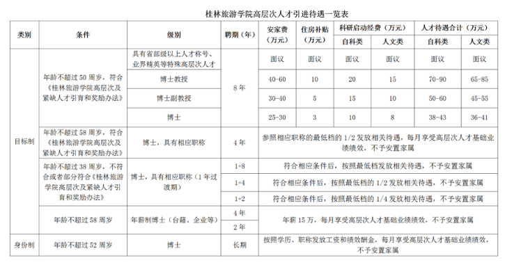 引進哲學、經(jīng)濟學、法學、教育學、文學、歷史學、理學、工學、農學、醫(yī)學、軍事學、管理學、藝術學、交叉學科等學科門類的博士人才;優(yōu)先引進人工智能、旅游安全、國際關系、區(qū)域國別學、心理學、經(jīng)濟安全、計算機科學與技術、測繪科學與技術、體育學、食品科學與工程、地理科學、統(tǒng)計學、民族學、生態(tài)學、機械工程、自動化等博士研究生人才。