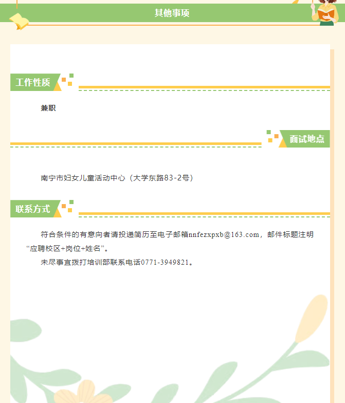 南寧市婦女兒童活動中心招聘教師