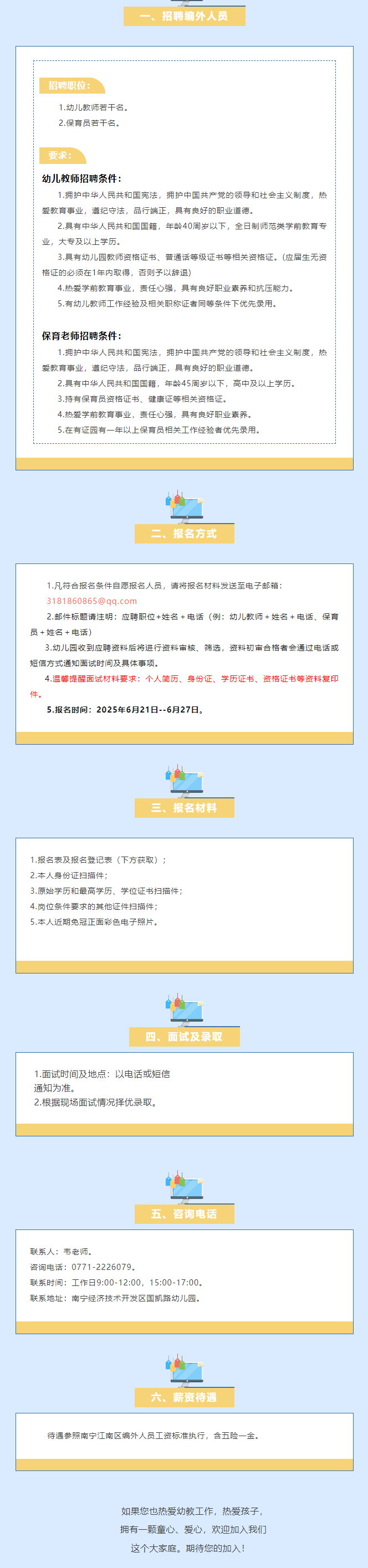 2025年南寧經(jīng)濟(jì)技術(shù)開發(fā)區(qū)國凱路幼兒園招聘編外人員若干人