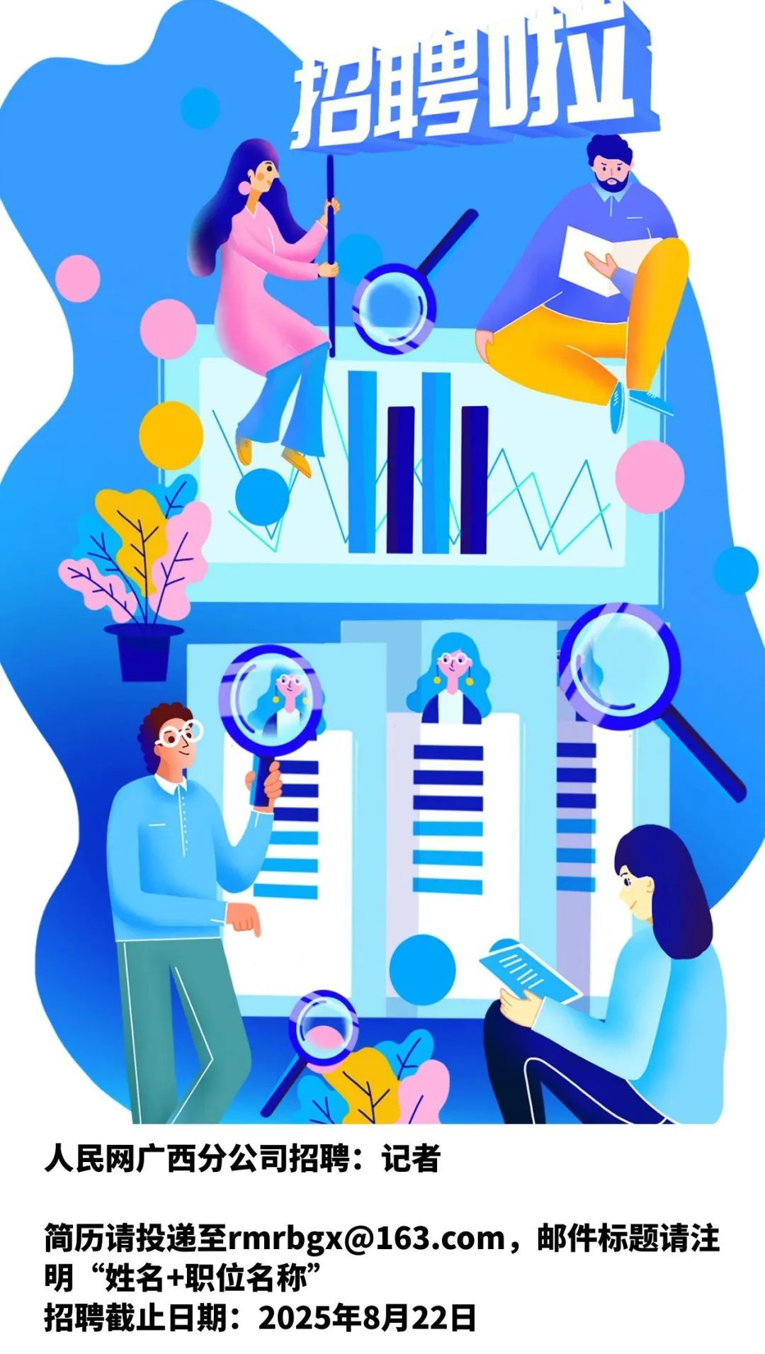 簡歷請投遞至rmrbgx@163.com,郵件標(biāo)題請注明“姓名+職位名稱”,招聘截止日期:2025年8月22日。