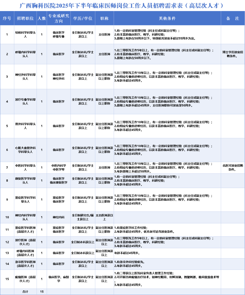 ▲附件1:廣西胸科醫(yī)院2025年下半年臨床醫(yī)師崗位工作人員招聘報名表。(掃一掃二維碼下載表格)