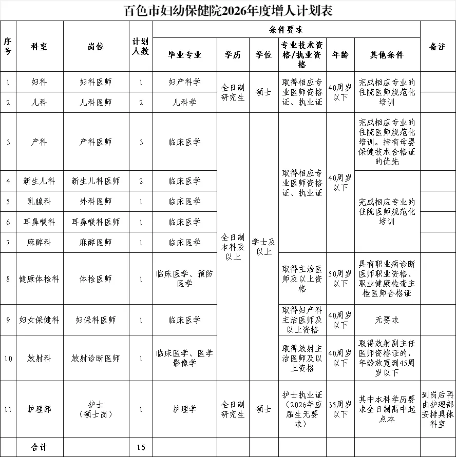 咨詢(xún)電話:百色市婦幼保健院人事科0776-2842398