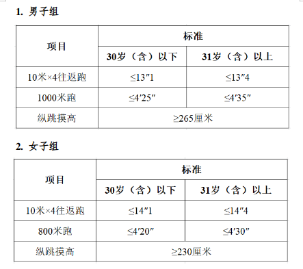 備注:年齡計(jì)算時(shí)間截止到參加體能測評(píng)當(dāng)月。