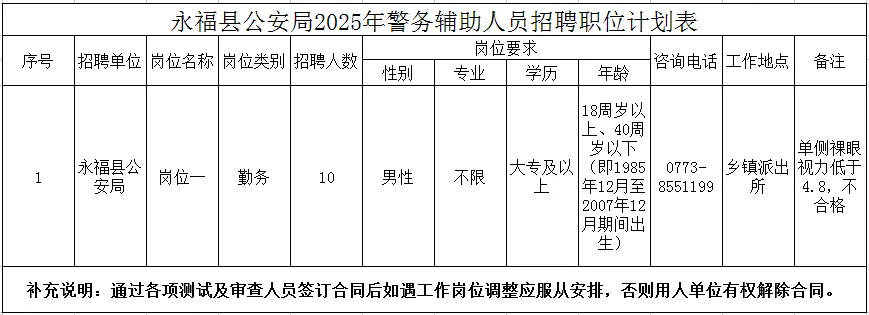 1、永福縣公安局輔警招聘表(見附件1);