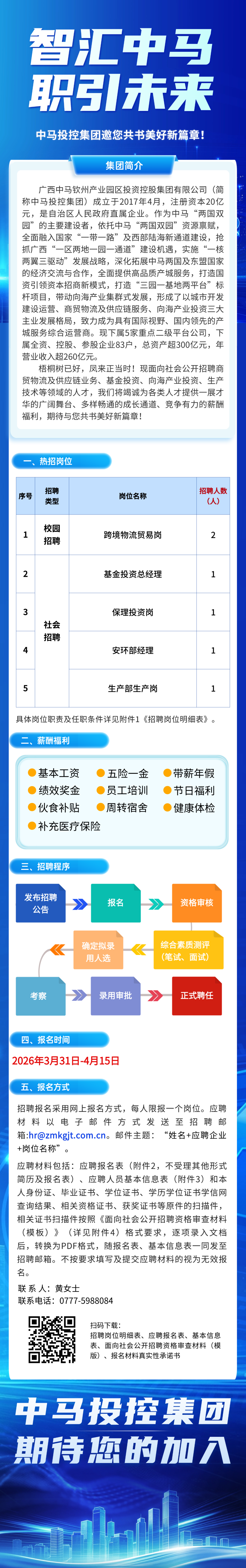原文標(biāo)題:2026年中馬投控集團(tuán)招聘公告